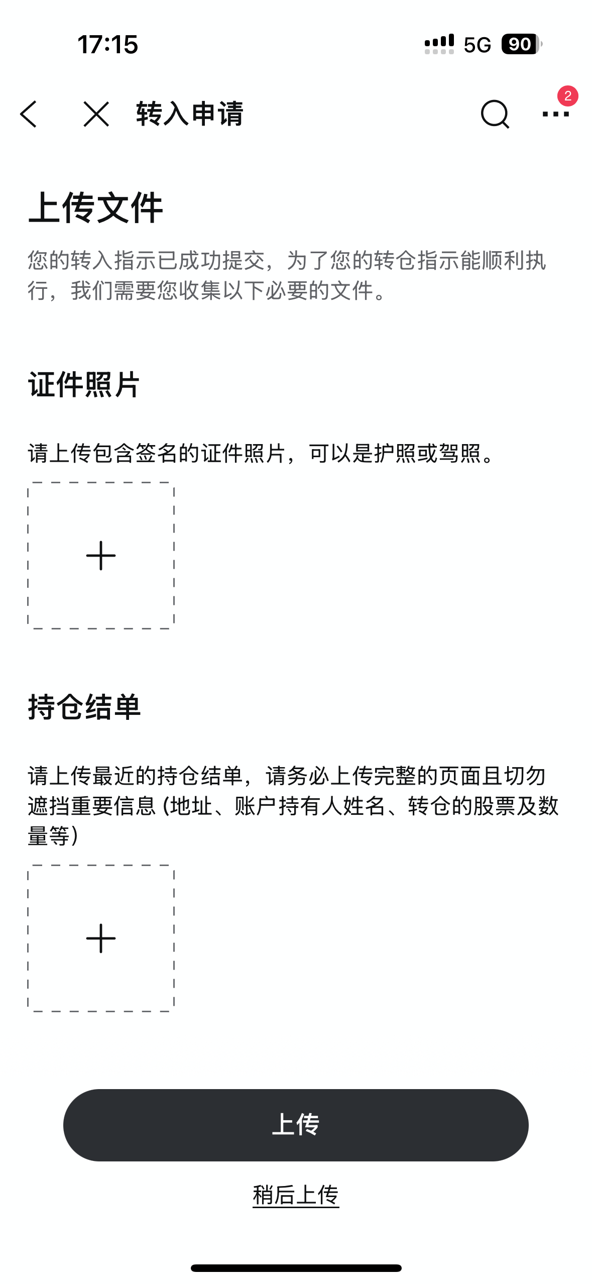 • 转入时间:转入美股预计3-15个工作日。(转仓时间仅供参考,以双方券商实际处理时间为准)