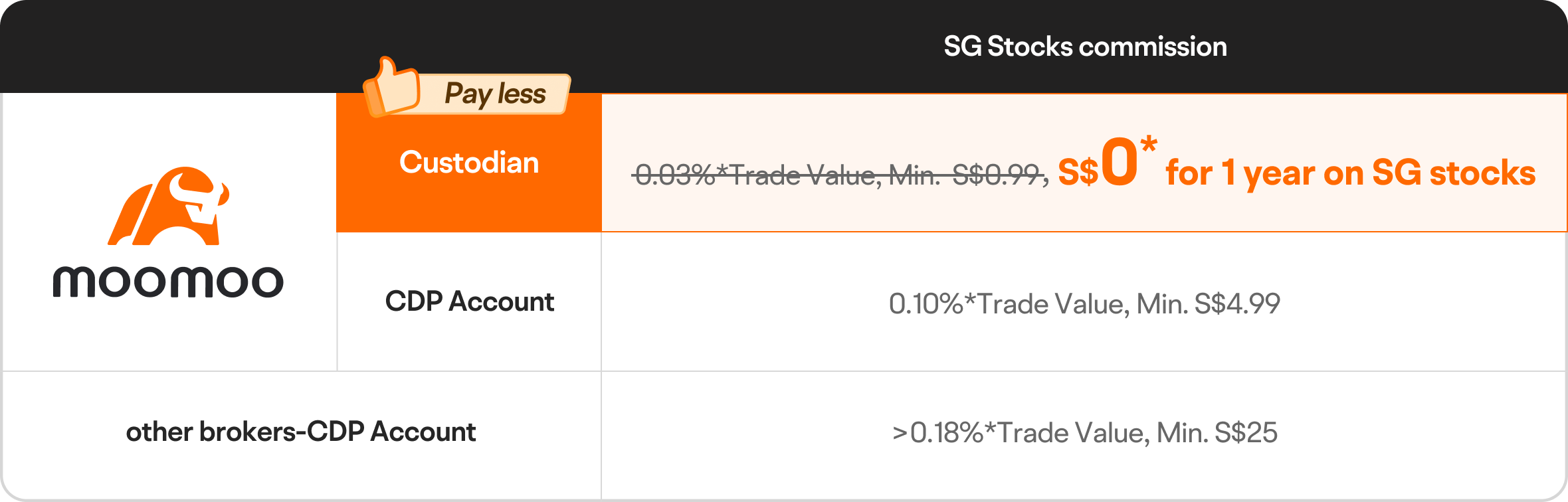* T&Cs and other fees apply. Moomoo account and moomoo CDP accounts are separate; you can transfer funds between them and enjoy 0 commission trading via moomoo account. Comparison data as of: 16 October 2025. Refer to moomoo fee schedule for more details.