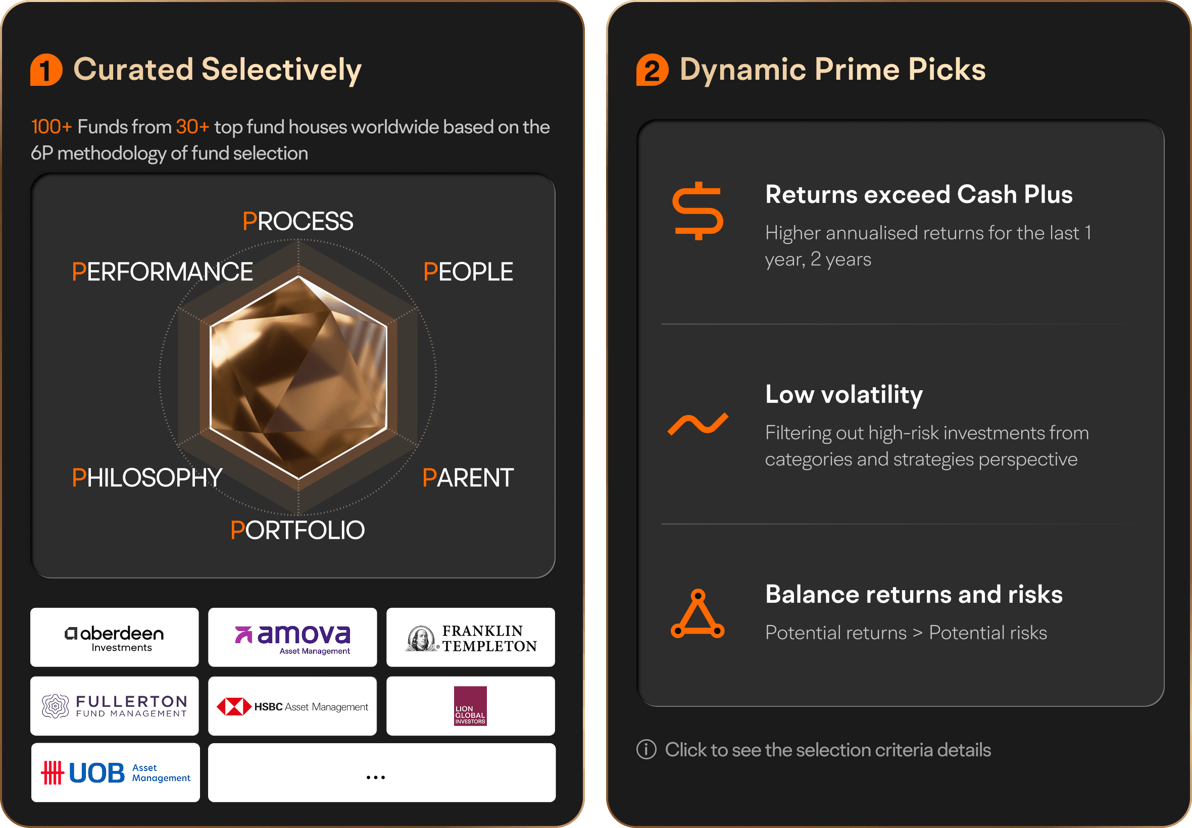 100+funds from 30+ top fund houses worldwide based on the 6Fmethodology of fund selection