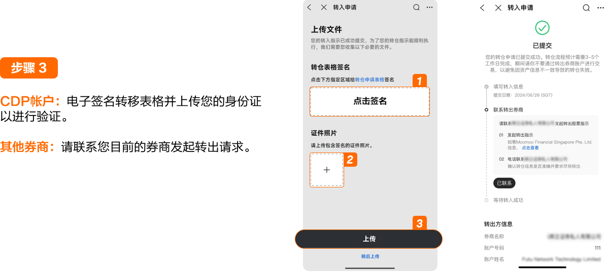 成功转移符合条件的资产到moomoo证券(新加坡)后,请向我们的客户服务团队clientservice@sg.moomoo.com提交请求,附上您的其他券商账户的账单以申请转账费用补贴。