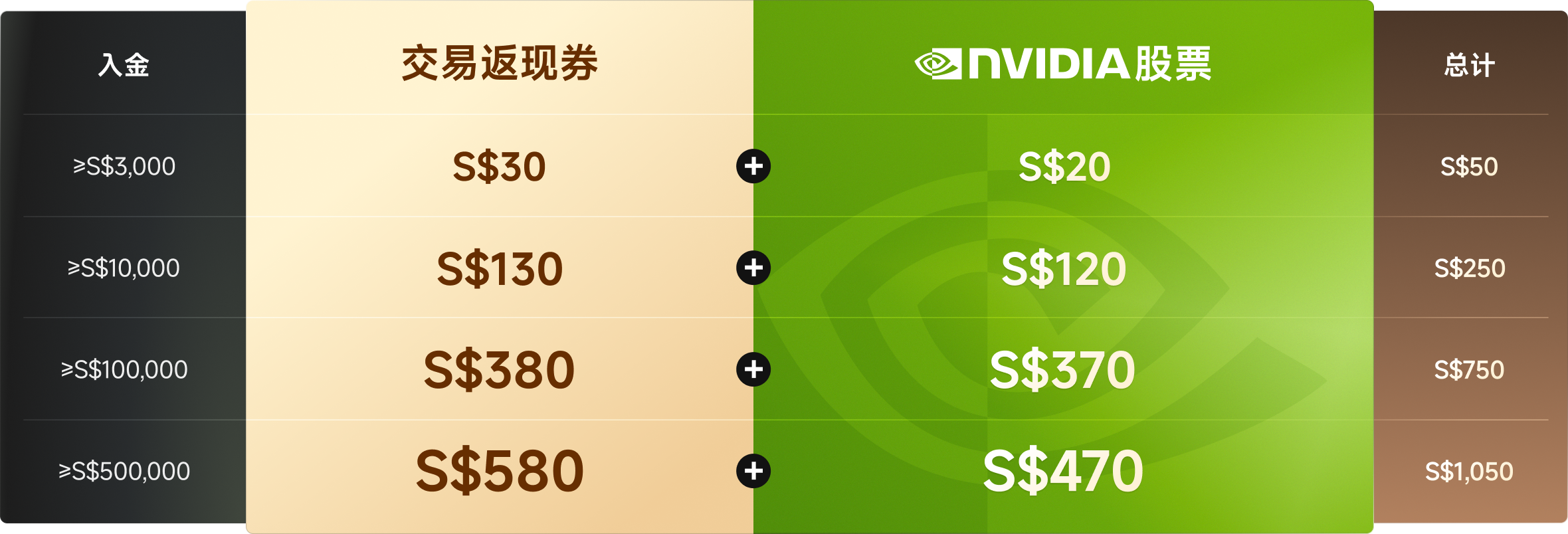 3. 英伟达股票碎股在满足对应等级的资产维持要求前将保持冻结状态。满足指定条件后,英伟达股票碎股将自动解锁并发放至您的Moomoo SG 综合账户。