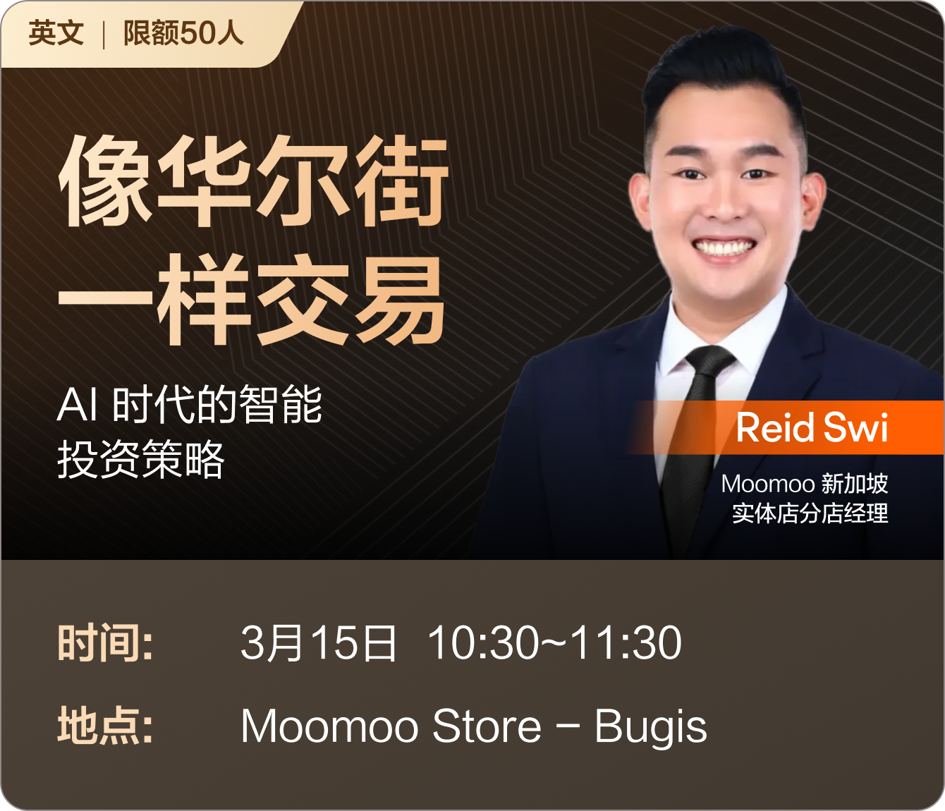 新加坡的 moomoo 实体店会定期举办投资讲座与工作坊,内容涵盖市场展望、投资主题,以及平台功能教学等。