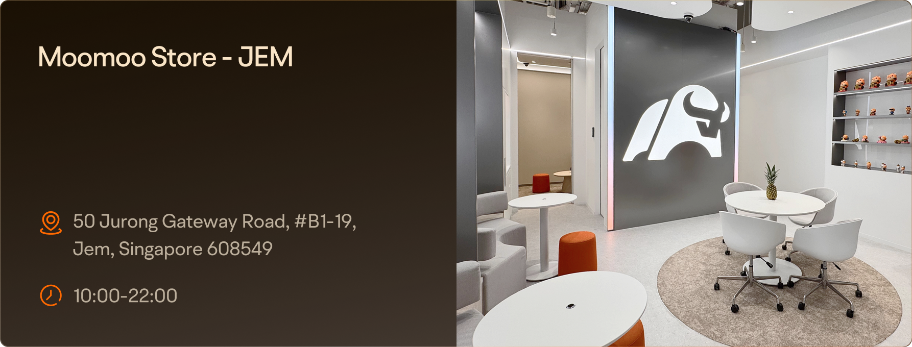 目前,moomoo 已在新加坡设有实体店,分别位于 Bugis、313@Somerset 以及 JEM。 您可以在页面上方的「门店位置与营业时间」板块查看详细地址与路线指引。