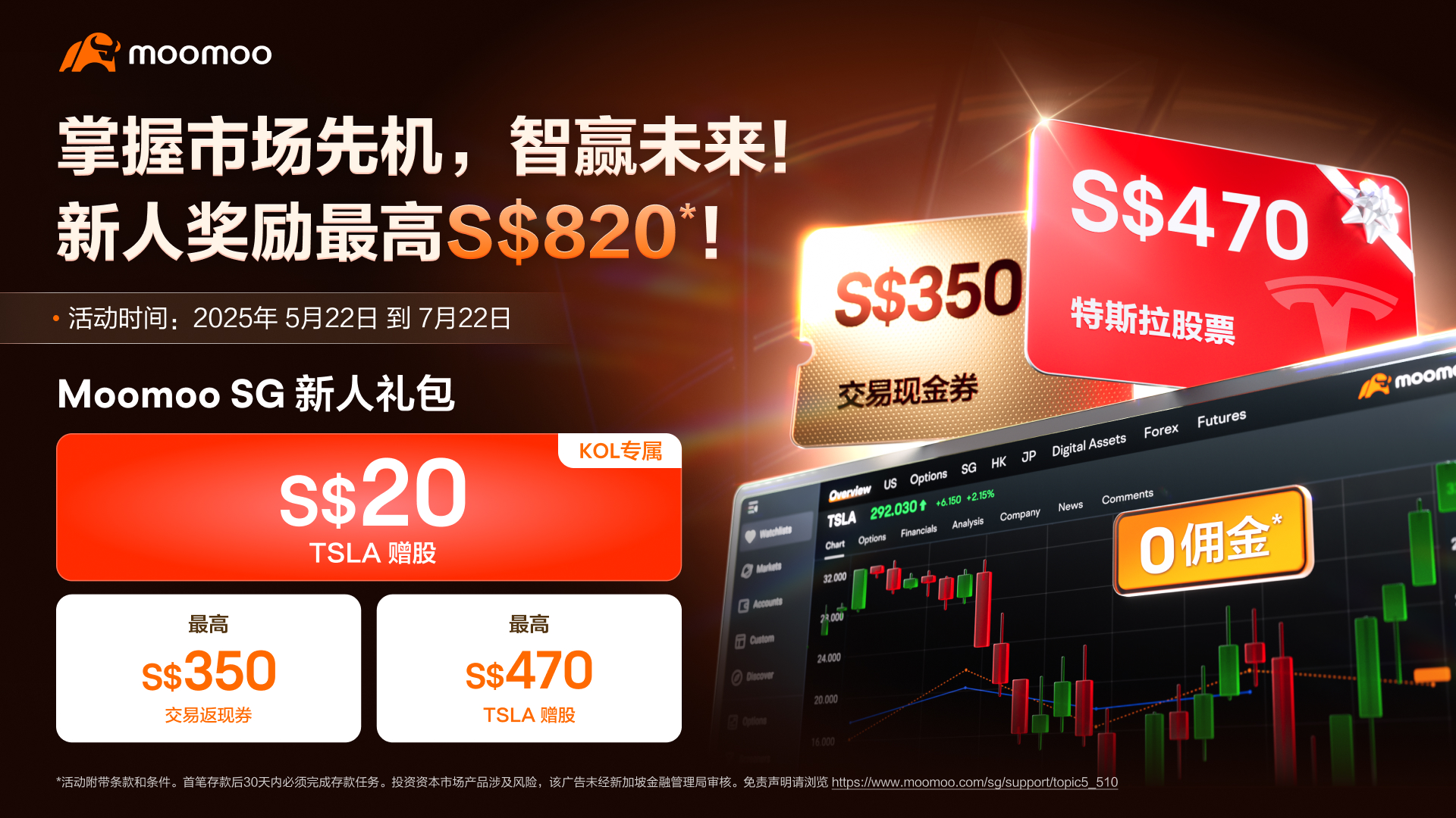 本次優惠活動中獎勵和優惠均由moomoo證券(新加坡)(簡稱“Moomoo SG”)提供。參與此活動即表示您同意本活動的條款和條件以及現有的客户協議。Moomoo SG對參與者的資格具有最終決定權。