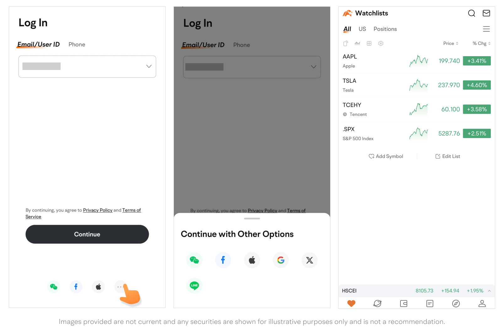 • Tap the ... icon to show more third-party login options.