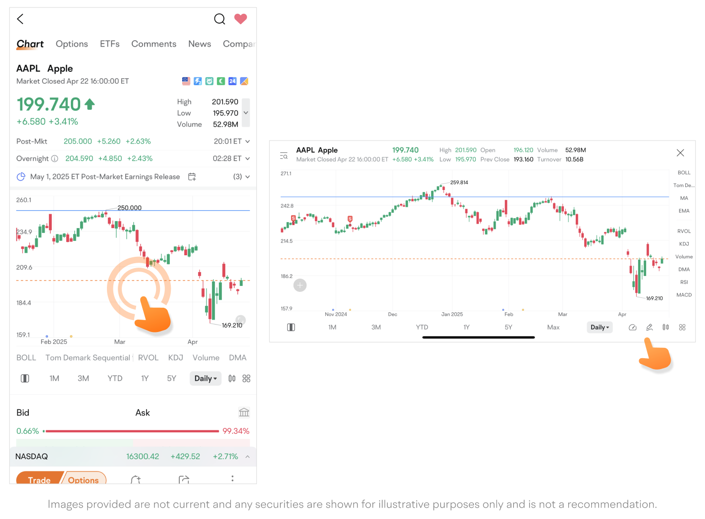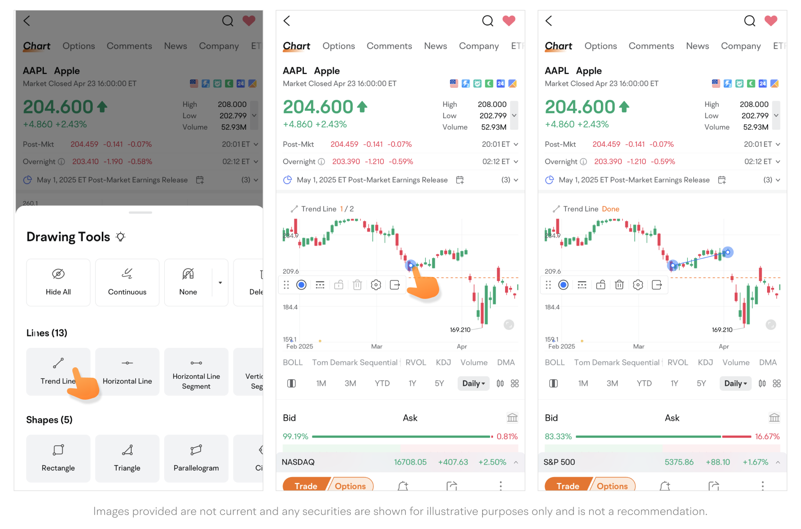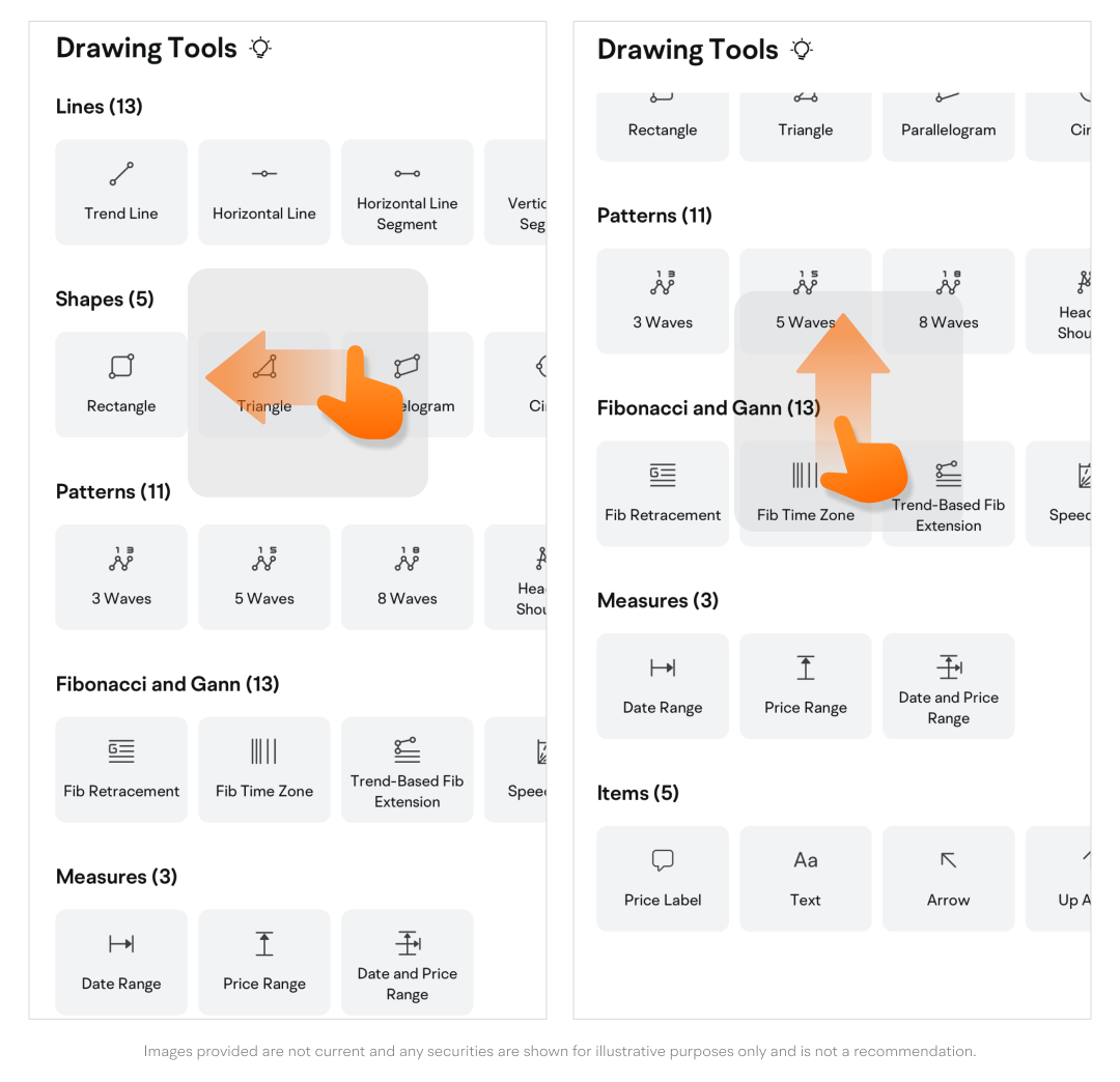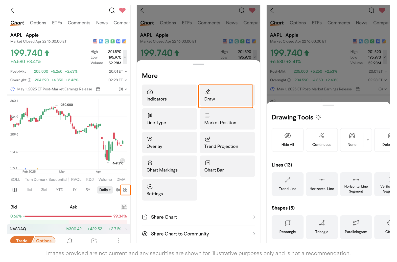 Path: Quotes page > Tap the "More" icon on the chart bar > Drawing Tools.