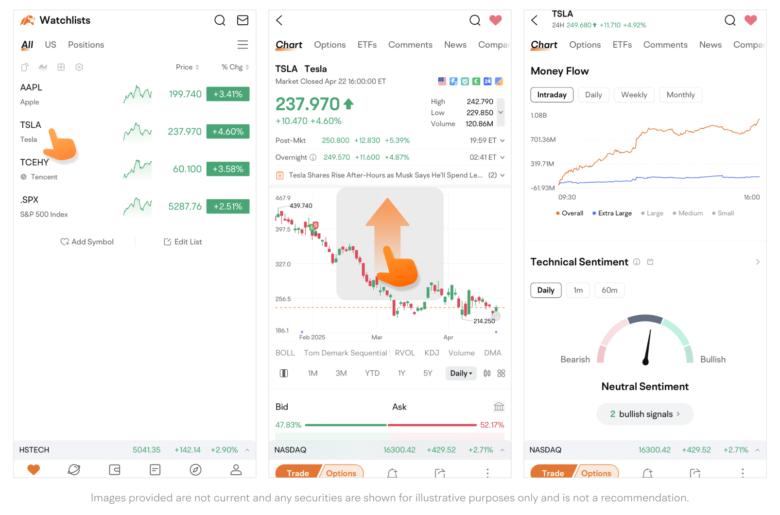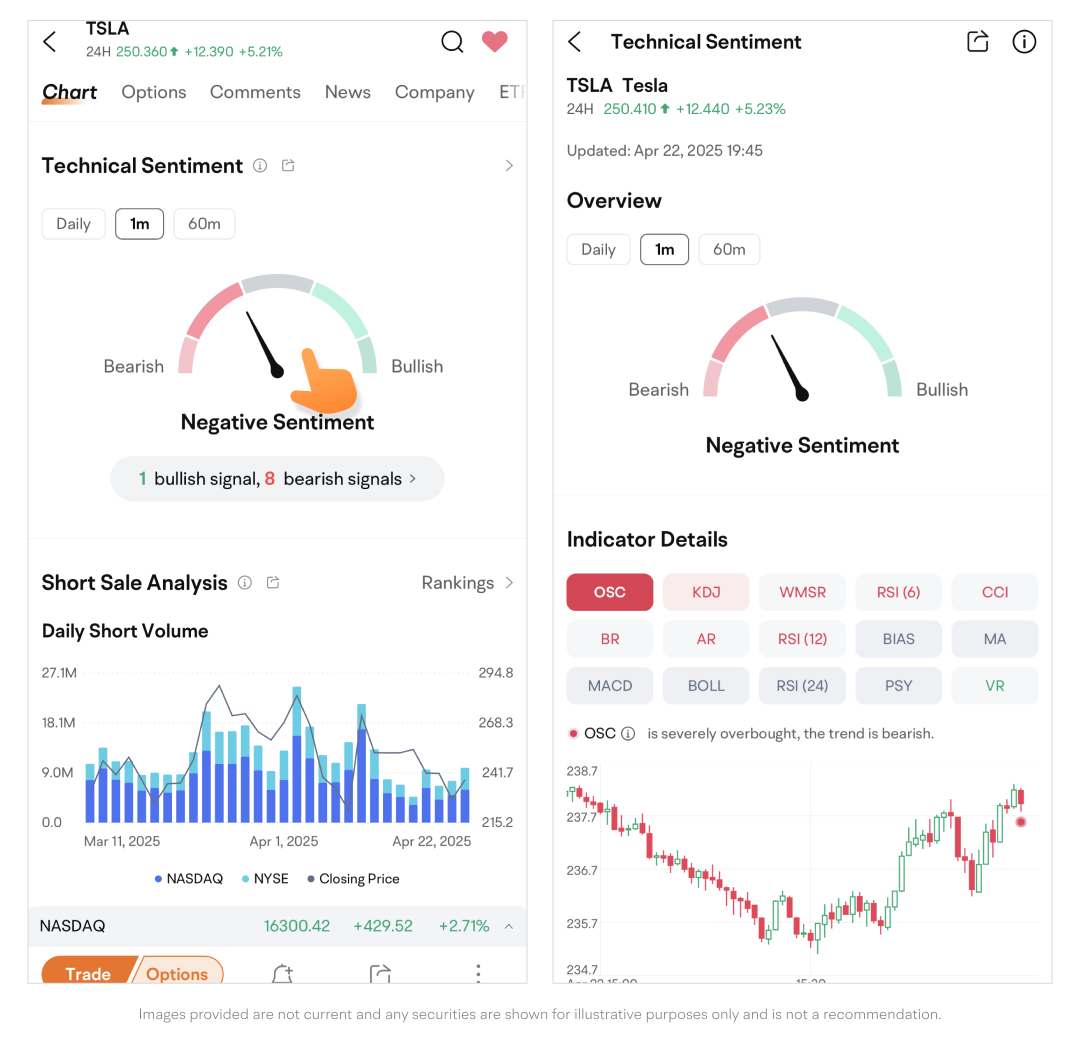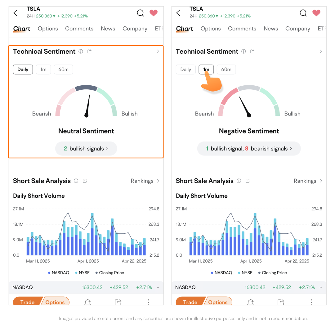 Path: Quotes page > Swipe up to find Technical Sentiment.