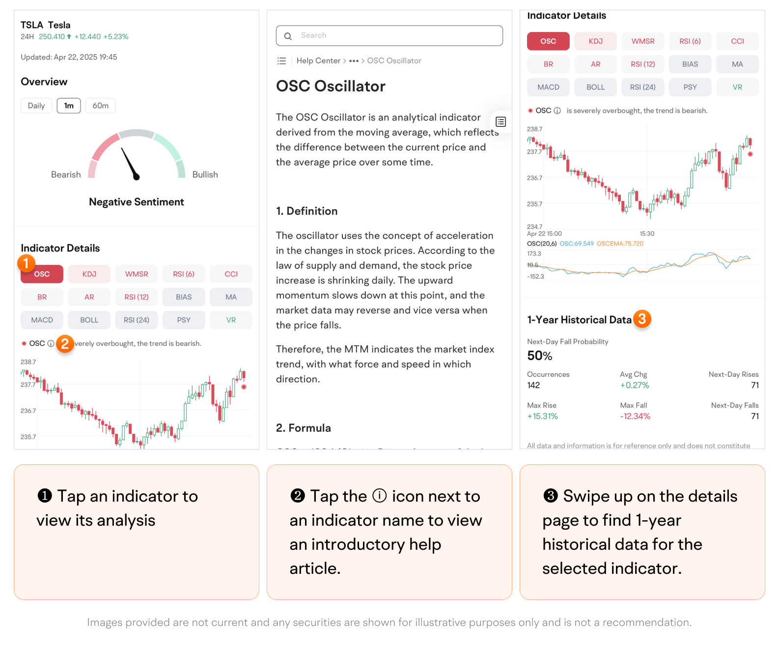• Tap an indicator to view its analysis and 1-year historical data.