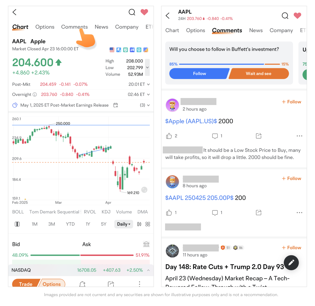 To view stock comments, go to a quotes page, then tap Comments on the navigation bar.