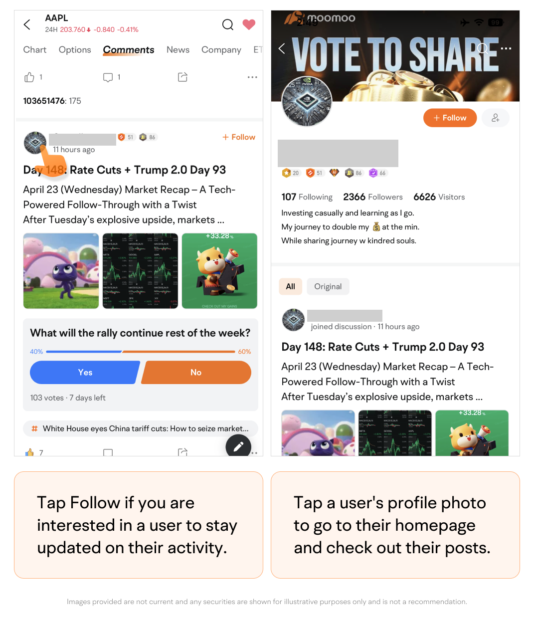 Tap Follow if you are interested in a user to stay updated on their activity.