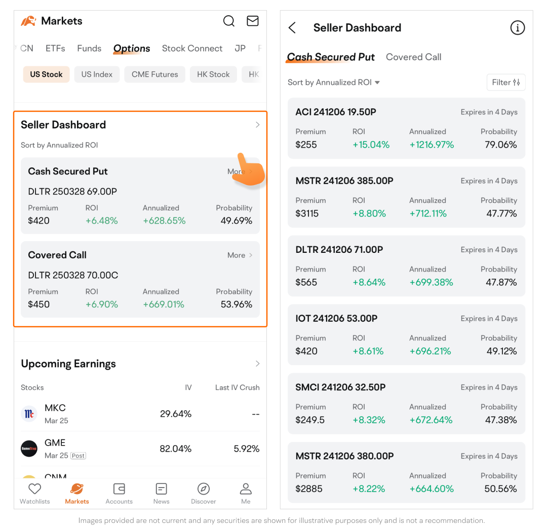 Designed for options sellers aiming to generate income, this tool helps identify suitable options contracts to sell.