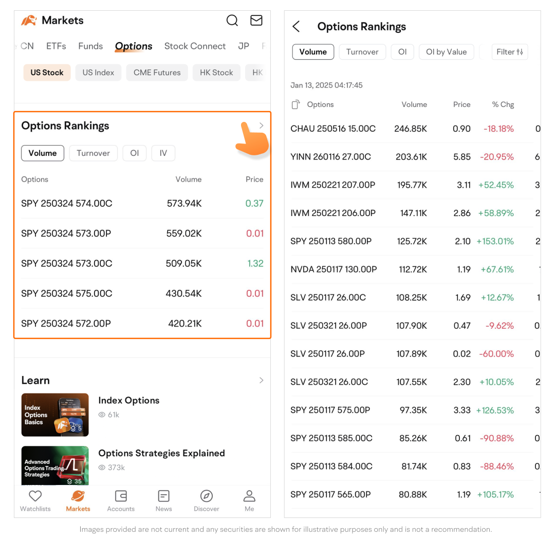 Path: Markets > Options.