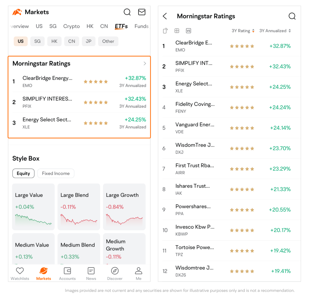 Easily pick out top-performing funds with high ratings by Morningstar.