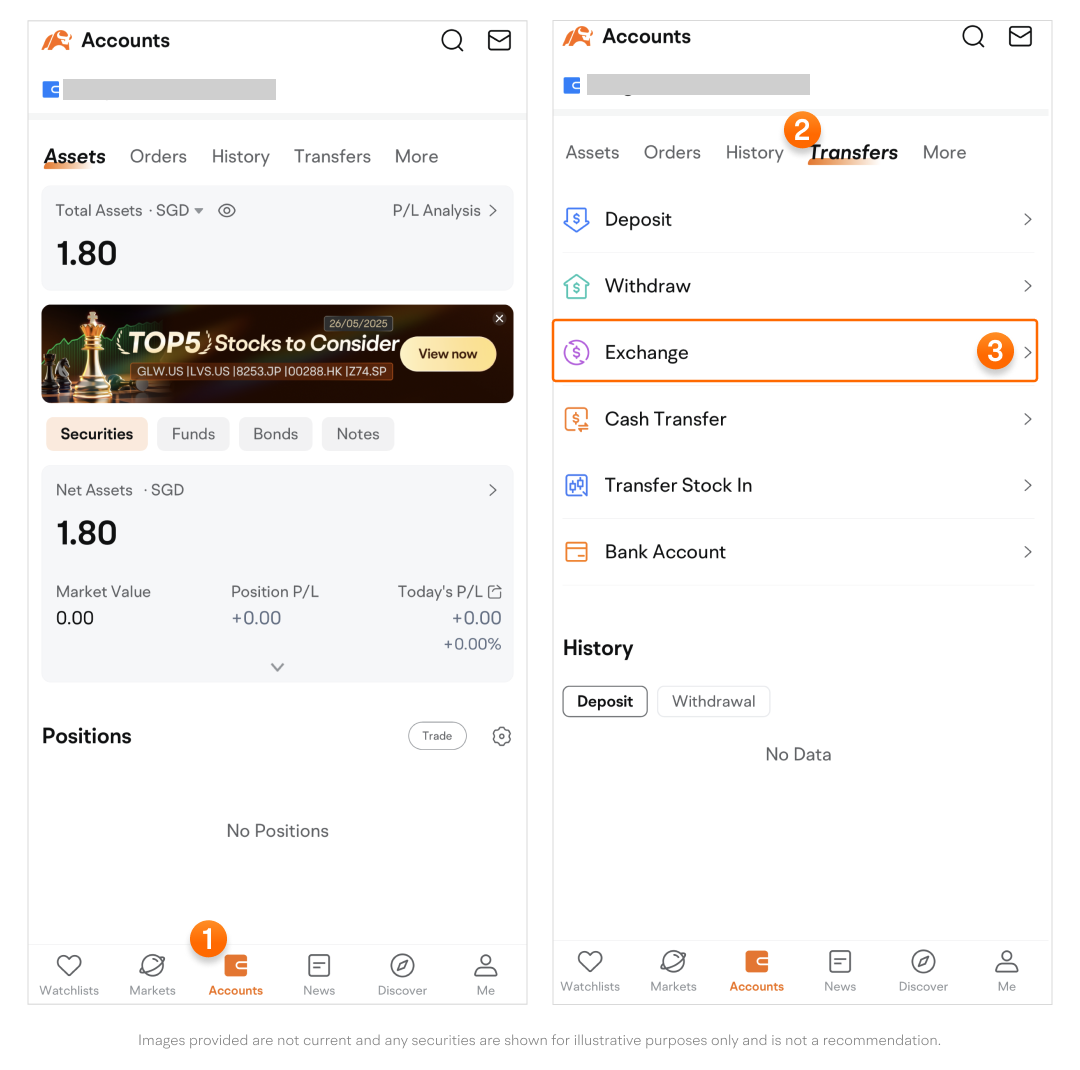 You can easily exchange major currencies such as USD, HKD, and CNH, enabling trading across multiple markets and opening up global investment opportunities.