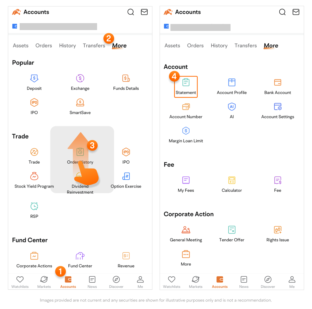 • Swipe up to find the Account section, then tap Statement.