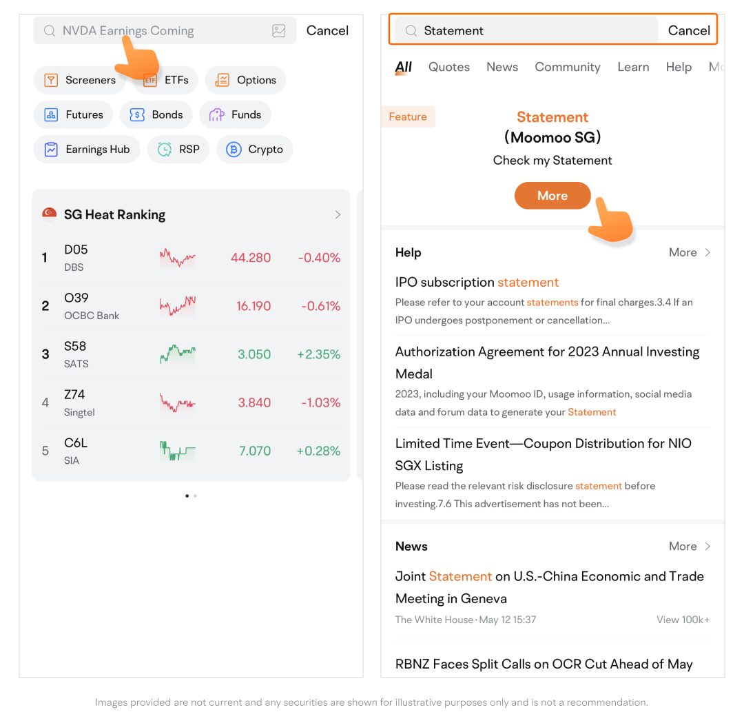 • Tap the Search icon at the top right, then search for Statement.