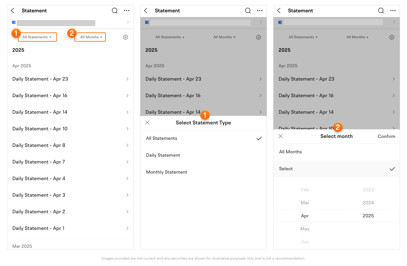 • To view statements from a specific month, tap All Months > Select.