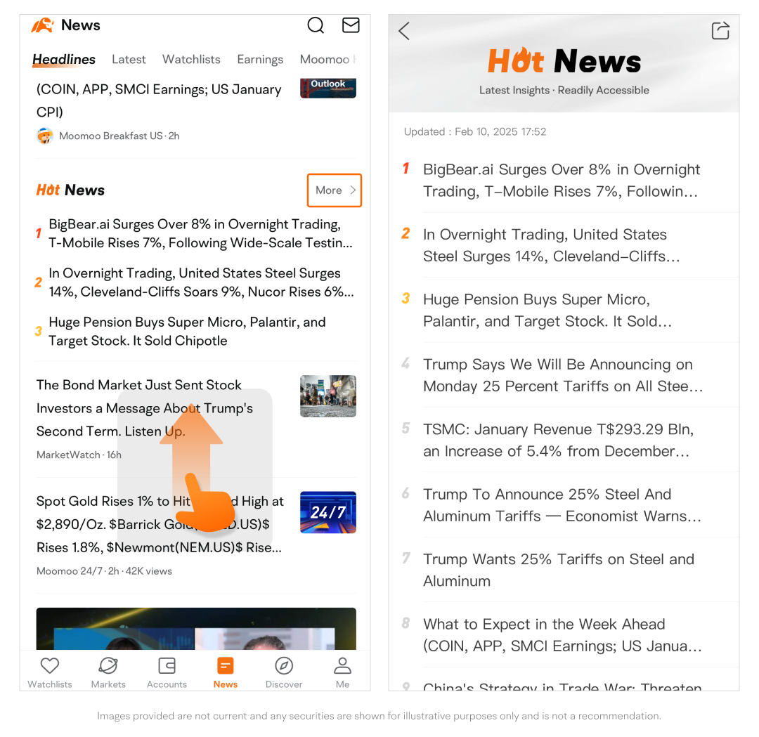• Swipe up to find the Hot News list. Tap More for the full list.