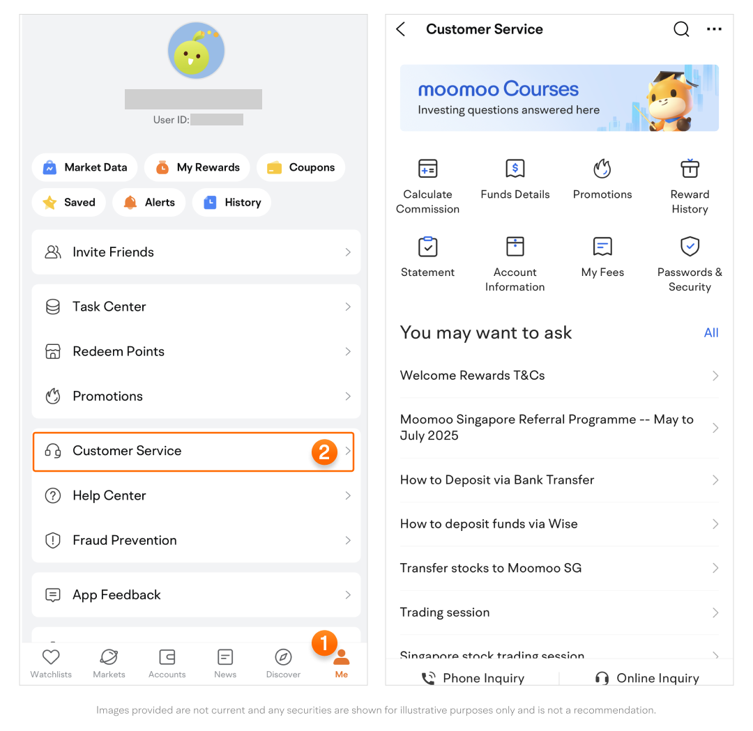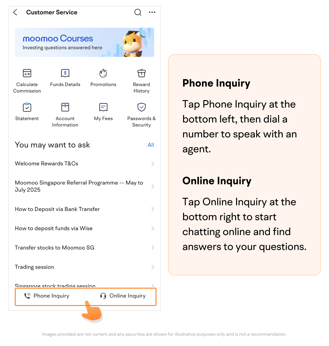 Throughout your moomoo journey, Customer Service is always there to help you out.