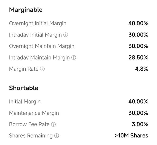 After enabling Intraday Leverage Plus, you'll see two sets of margin ratios on the stock quotes page for eligible stocks: