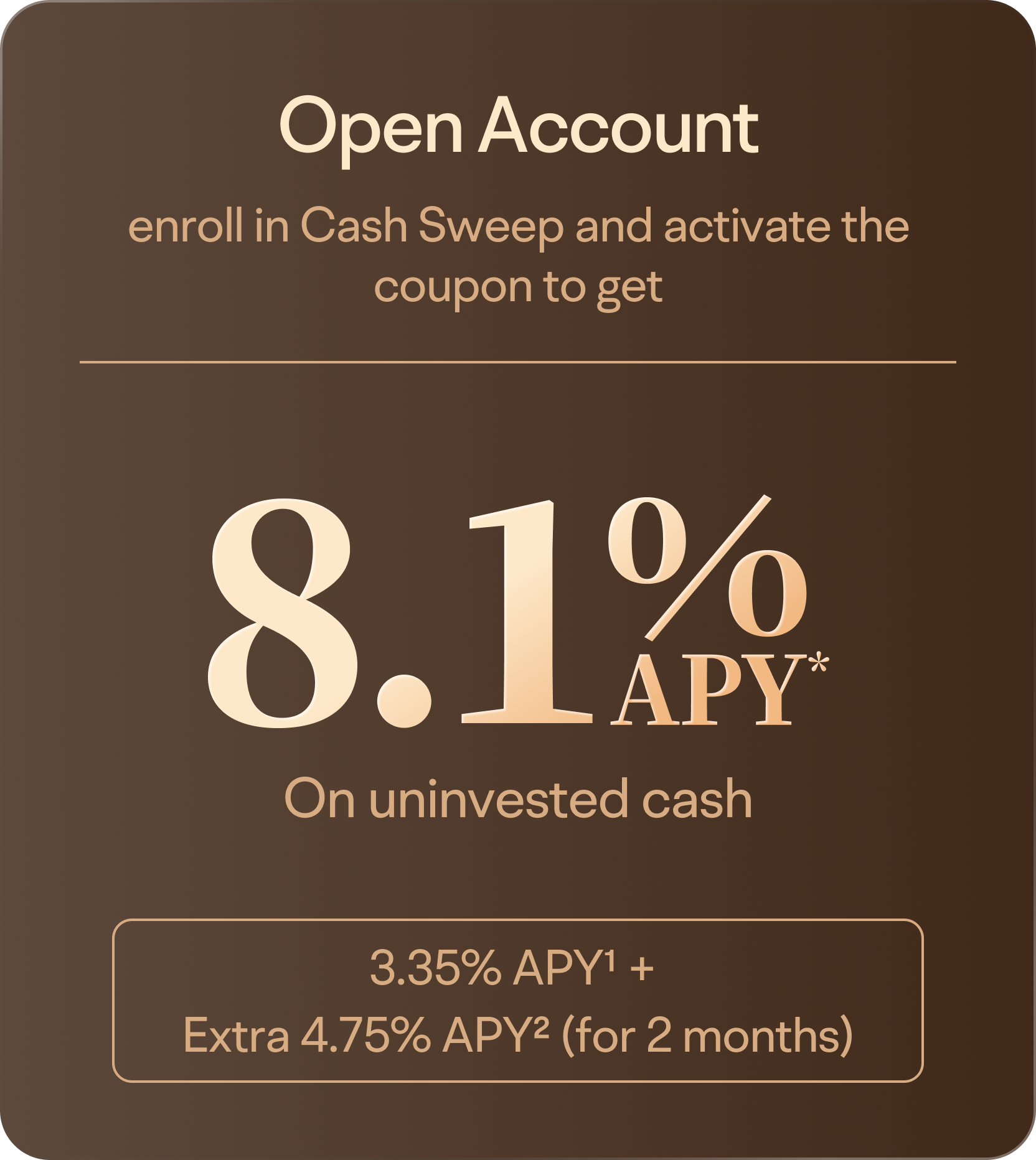 Cash Sweep Program is a cash management program provided by Moomoo Financial Inc. This program is only open to US securities accounts under Moomoo Financial Inc. Uninvested cash is automatically swept to the bank(s) through this program and is eligible to earn interest.