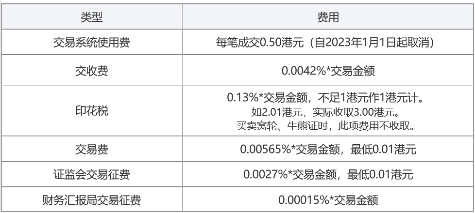 注:根据香港交易所通告,自2023年11月17日起,印花税从0.13%下调至0.10%。