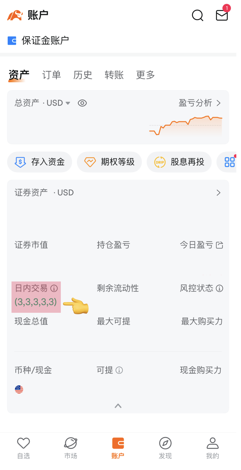 在您的账户详情页,有一个字段叫做「日内交易(T, T+1, T+2, T+3, T+4)」,若您的资产净值大于25,000美元,且您愿意被标记为PDT,您可以不用在意这些数字。