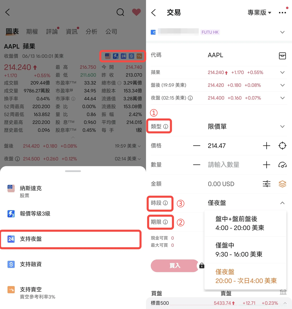 當前夜盤時段支持限價單、當日有效。請注意,未成交的夜盤訂單將在夜盤時段結束時自動過期。