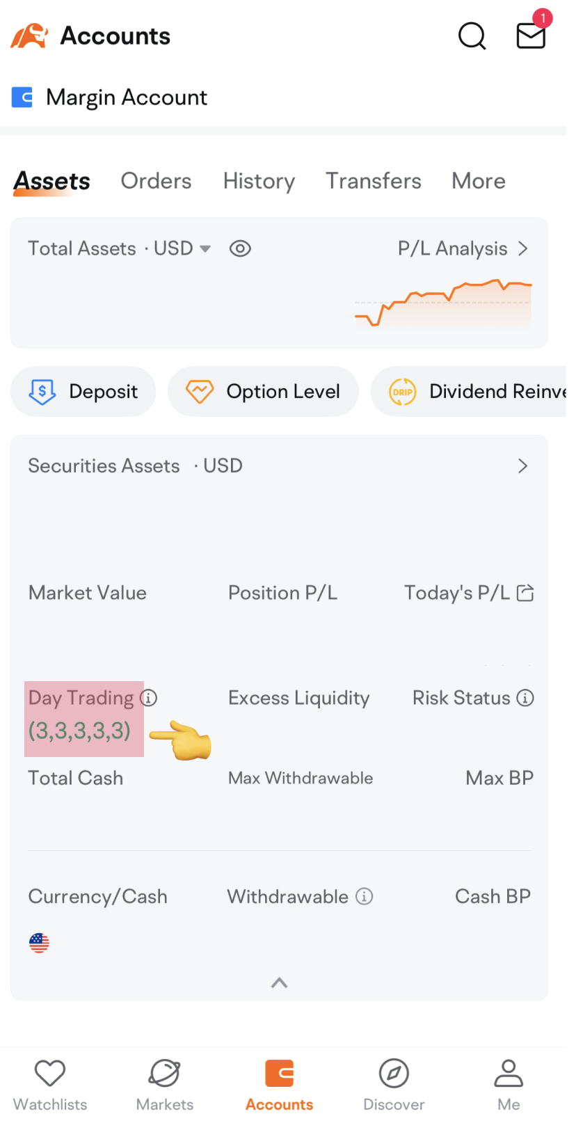 Sometimes, it’s challenging to track how many day trades you have done in the last five days. At Moomoo, your day trades left in your account can be conveniently seen on the Accounts page under “Day Trading”. Your total day trades are denoted as (T, T+1, T+2, T+3, T+4), where T is the current day, and each additional number denotes the next day. For example, if today was a Monday, the day trade counter could be read like this (Monday, Tuesday, Wednesday, Thursday, Friday), where the number in each spot corresponds to the amount of day trades remaining. This is extremely important to understand if you do not want to be flagged as a pattern day trader. Here are a few examples to further illustrate the point.